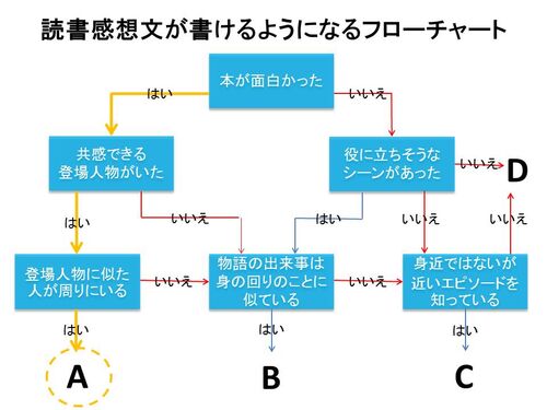 Aの方へのQ&A〜登場人物に注目した読書感想文 読書感想文が書けるようになるフローチャートで、Aに進まれた方にとって書き方の例は必要ないのかもしれません。きっと今まで通り読書感想文がかけるはずです。そこで、オリジナルの読書感想文に仕上がるよう「…